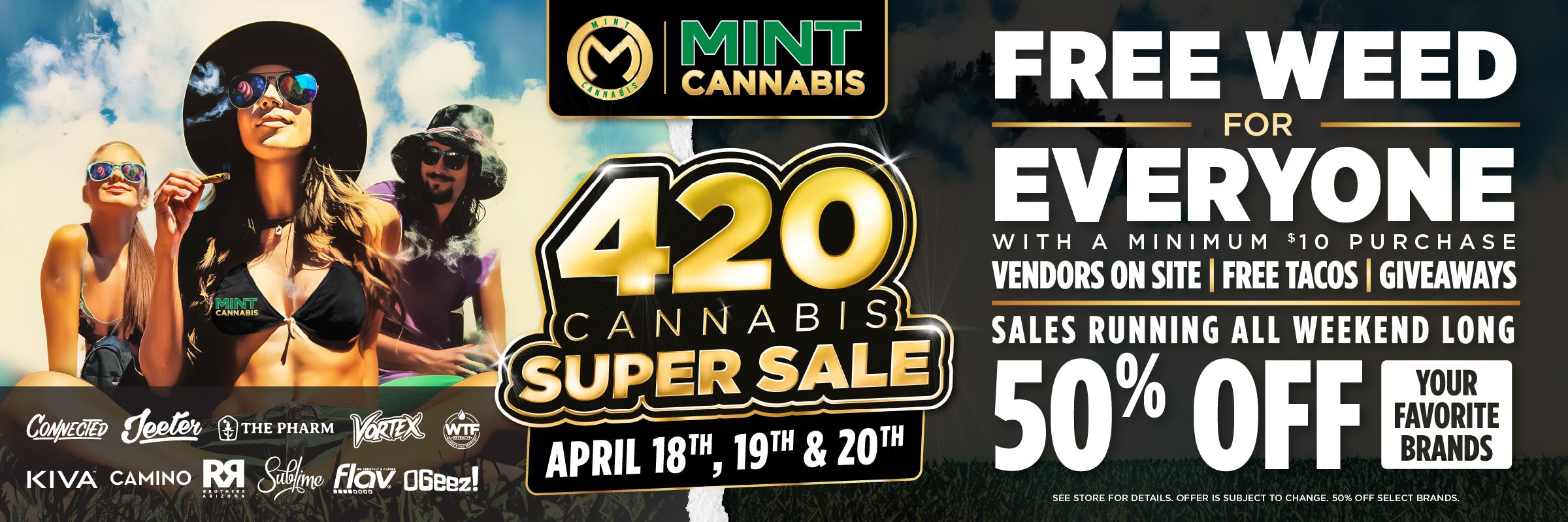 - (MINT CANNABIS MESA, TEMPE AND SCOTTSDALE): A go-to for their specialty, e.g., high-quality edibles, comfortable atmosphere. Keep an eye on their email list for 420 exclusives!