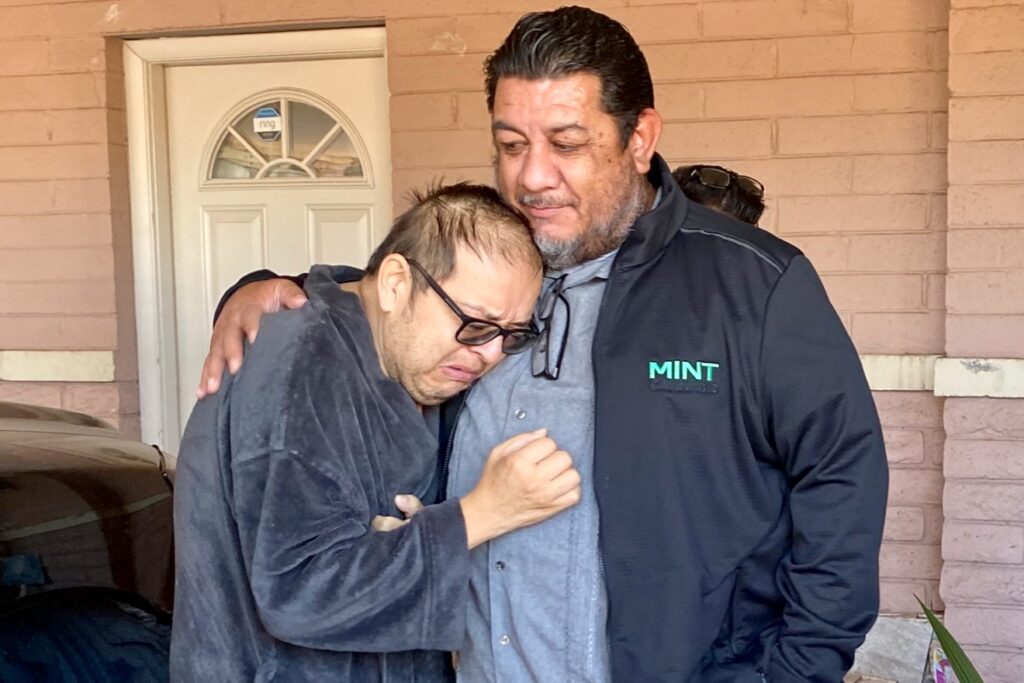 They knocked on the door, and when Mario Alberto Núñez Guzmán emerged, they gave him $1,000 to help with anything he and his family needs. Guzmán was moved to tears when he saw the oversize check.